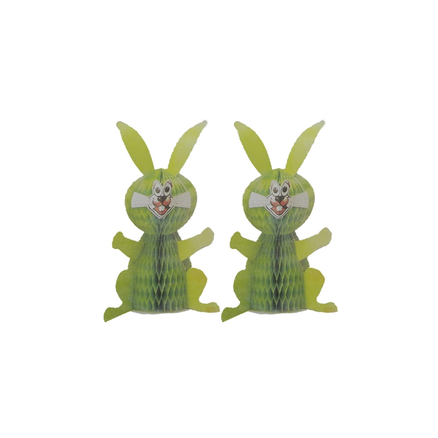 Découvrez ce set de deux lapins verts ou rose (pas le choix de la couleur qui dépend de l'arrivage). Ces deux petits lapins décoratifs viendront parfaire votre décoration de Pâques. Ils mesurent chacun 21 centimètres de hauteur. A utiliser de préférence en intérieur, le papier n'étant pas traité contre l'humidité ou à l'extérieur par temps sec. Vos enfants seront ravis de cette petite frimousse de lapin mignon.