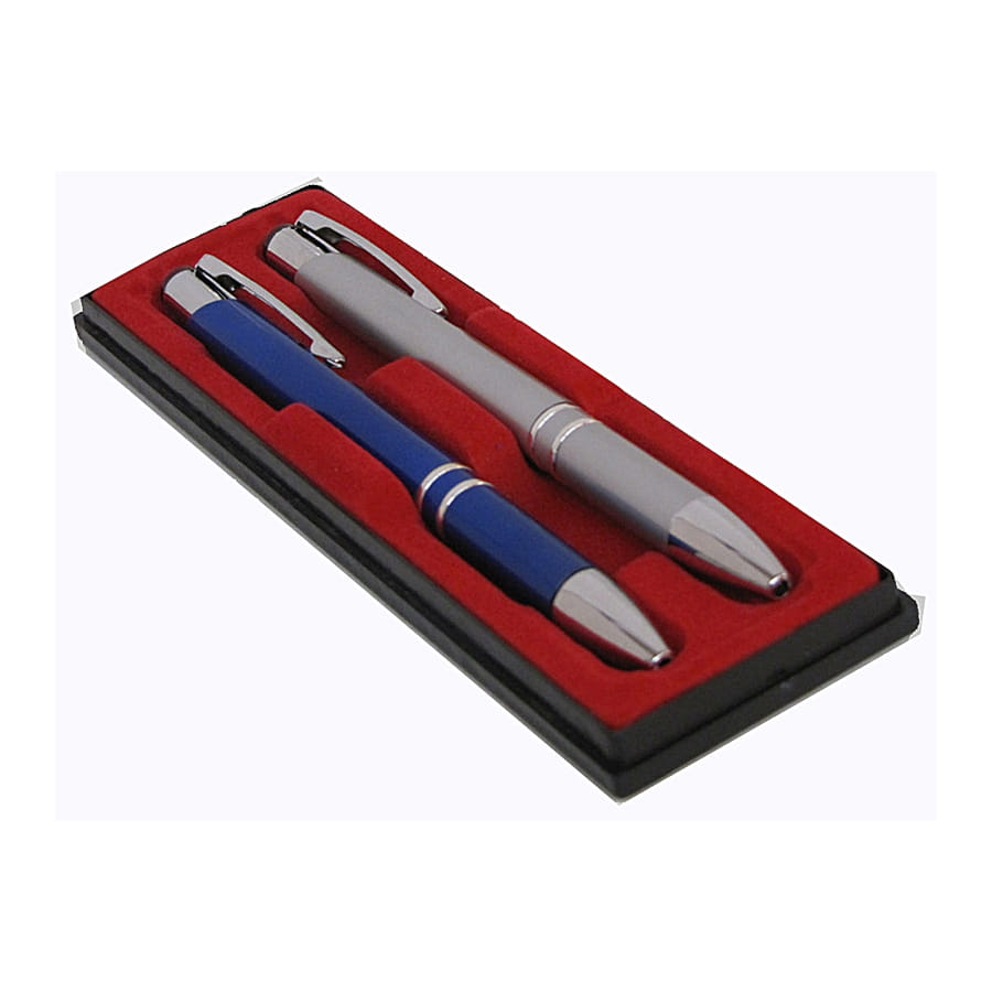 Parfois, pour que les gens vous prennent au sérieux à votre travail, il faut utiliser les bons accessoires. Nous vous conseillons ces stylos super classe, ici de couleur bleu et gris, mais également disponibles en 3 autres coloris assortis. Ils mesurent 13,5 cm chacun. Un coffret contient 2 stylos. Et c'est également une bonne idée de cadeau, vous n'aurez qu'à emballer le coffret et le tour sera joué. Lors de la commande, vous n'aurez pas le choix de la couleur.