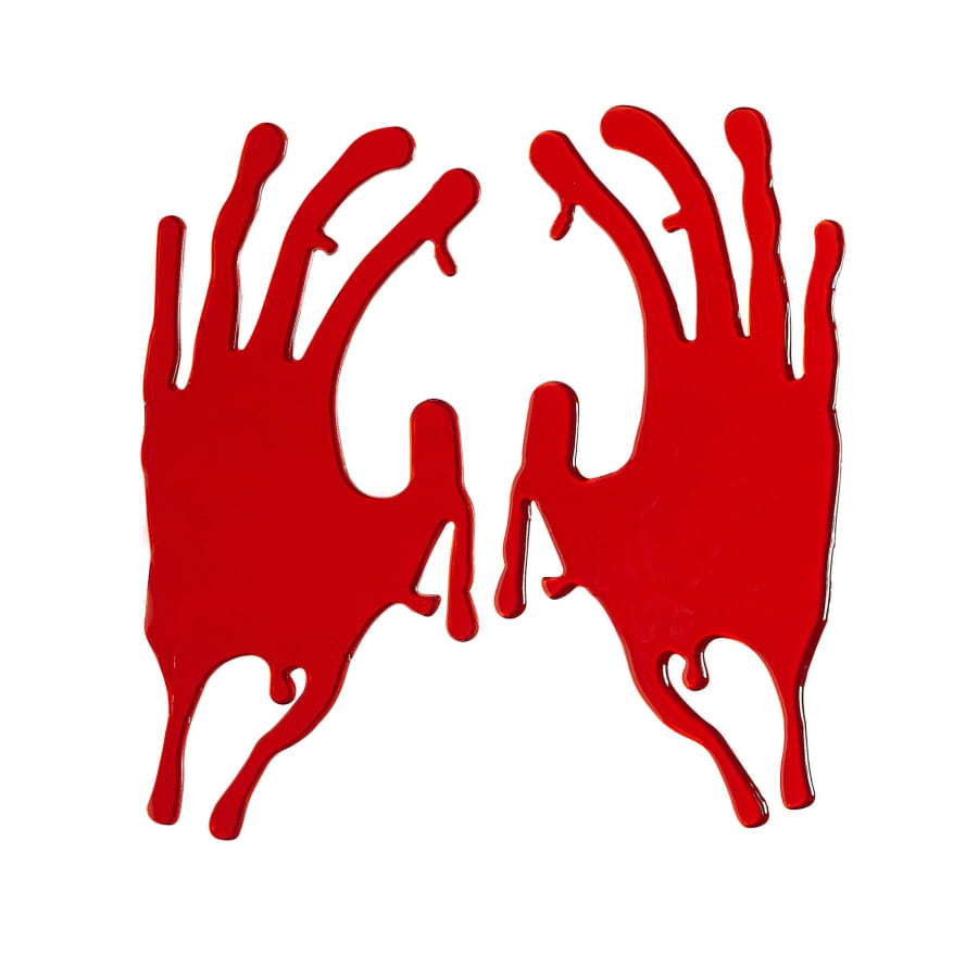 Les 2 traces de mains en sang de 10 x 23 cm sont des décorations de couleur rouge représentant des mains ensanglantées.