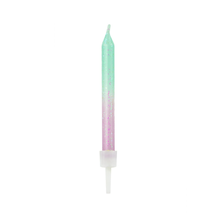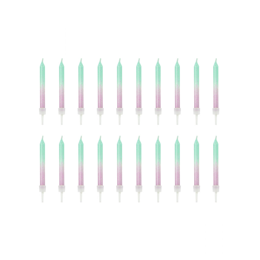 Nous vous proposons nos 20 bougies d'anniversaire coloris sirène, 6 cm.