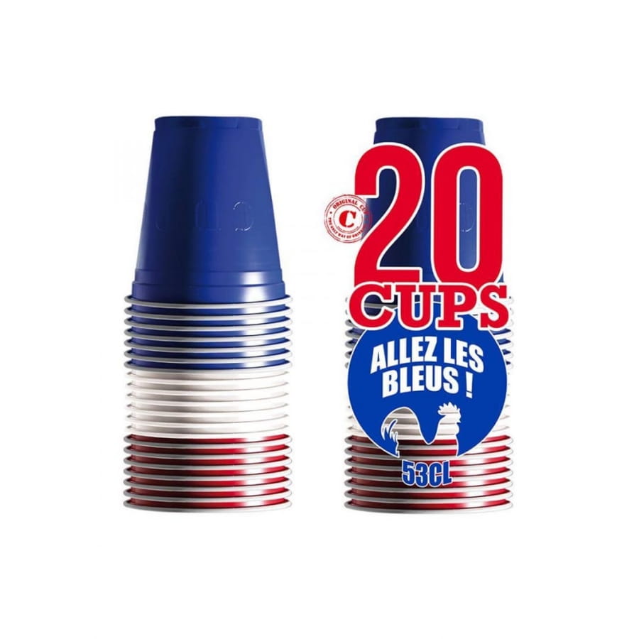Marquez votre soutien pour l'équipe de France lors d'une soirée tricolore, en vous offrant nos 20 Gobelets Original Cup bleu blanc rouge de 53cl.