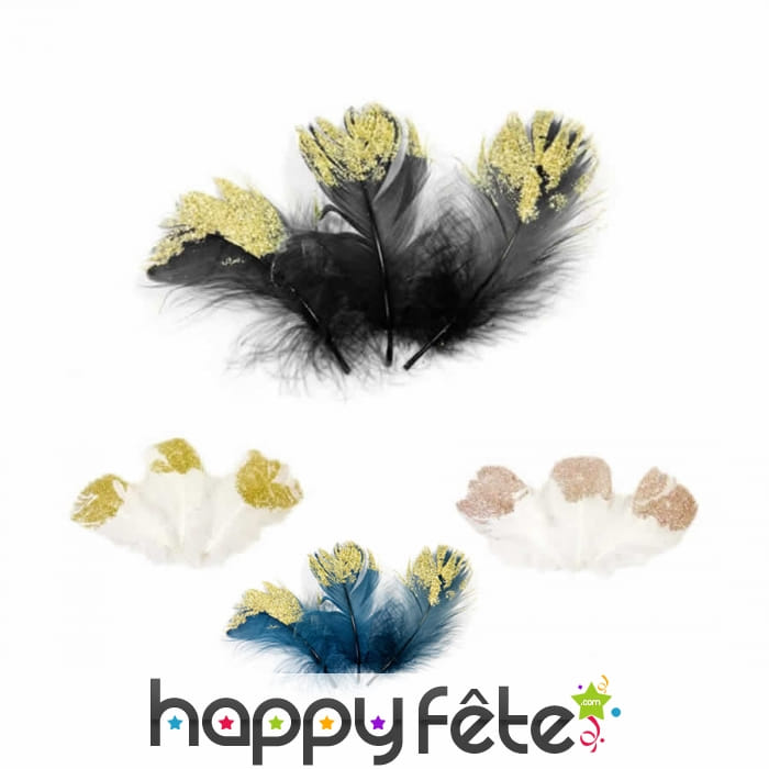 Apportez la touche bling bling ou la note rétro à votre costume de la Saint Valentin ou d'Halloween, avec les 20 plumes de 7,5 cm pailletées à l'extrémité.