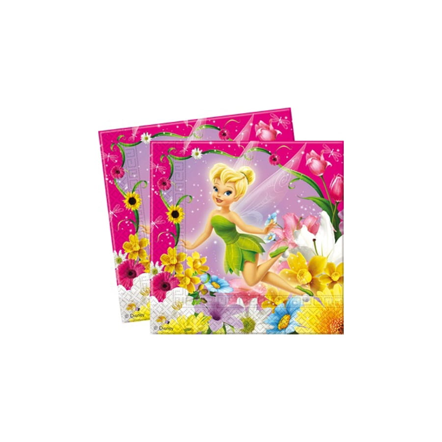 Et voici de belles serviettes qui feront plaisir à toutes les petites filles. Pourquoi ? Parce que ce sont des serviettes de la Fée Clochette tout simplement. Une jolie photo d'elle dans ss robe verte agrémente les serviettes roses. Celles-ci mesurent 33 x 33 cm une fois dépliée, sont à double pli et sont livrées par paquet de 20. Elles sont sous licence Disney.