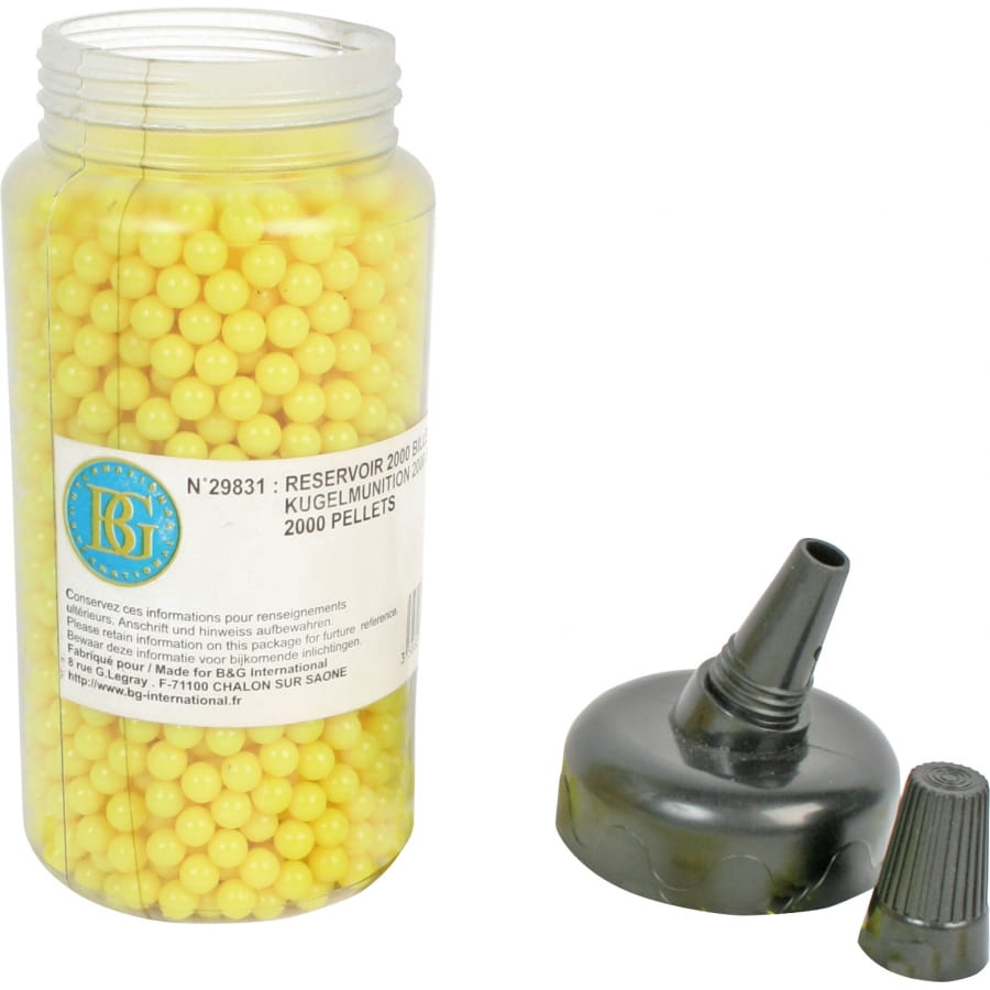 Boîte contenant 2000 billes de couleur jaune, pour pistolet à billes. Le contenu de cette boîte ne convient pas aux enfants et ne doit pas être considéré comme un jouet. Il vous est impossible de choisir ni le modèle ni la couleur des billes. Vous recevrez la boîte comme présentée.