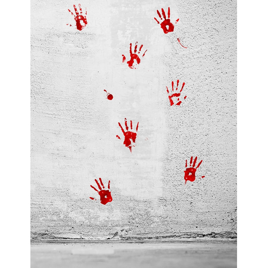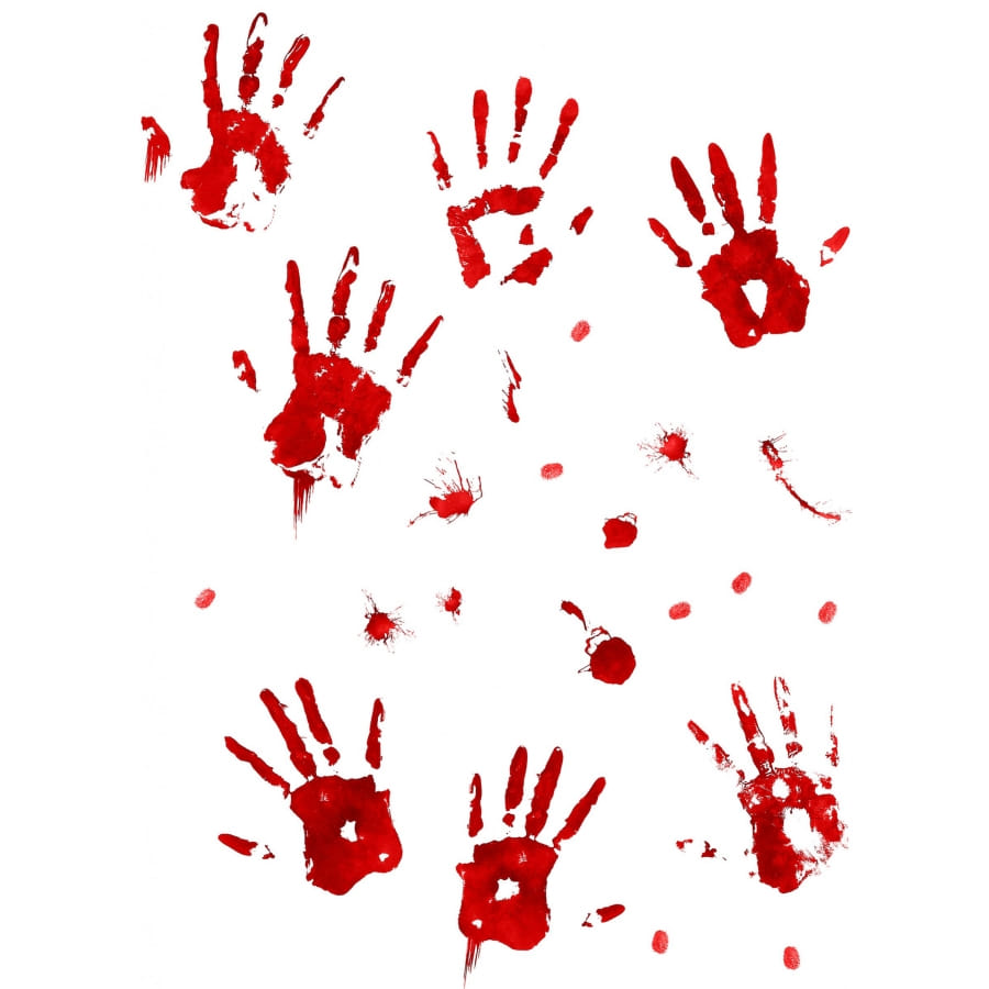 Ces autocollants arborent des empreintes de mains sanglantes et des taches de sang.
