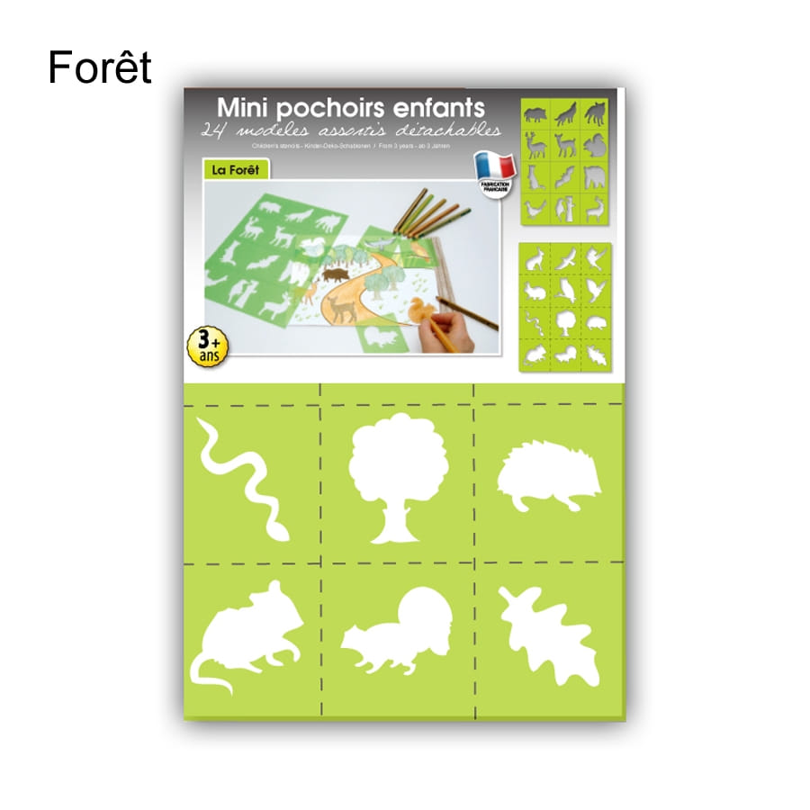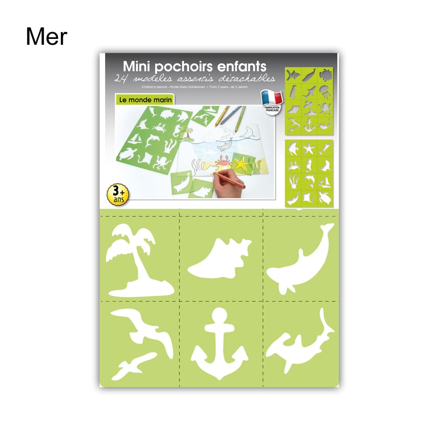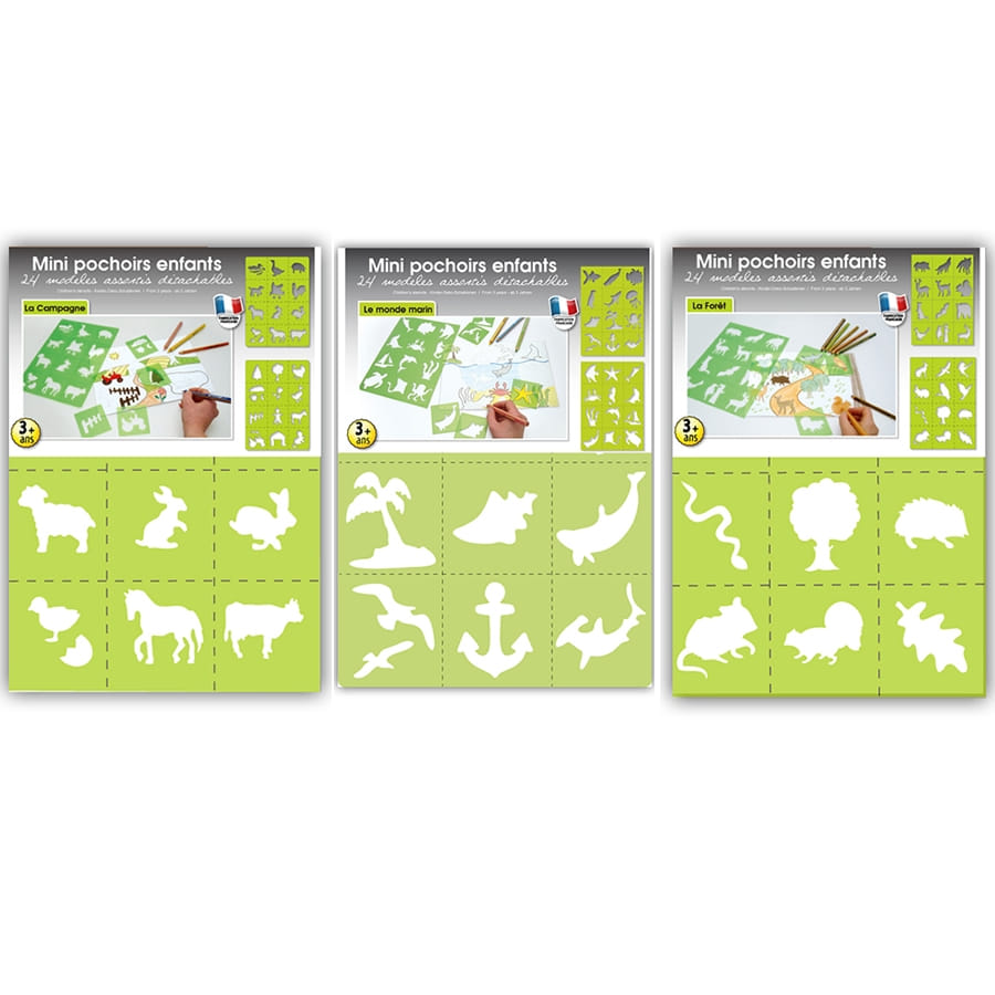 Pour amuser les plus petits à la maison, parfois, on est à cours d'idée. Ce set contenant 24 mini-pochoirs sur le thème de la nature est désormais disponible pour vous. De couleur verte, ces pochoirs sont de 7 x 7,5cm. Trois thèmes sont proposés : campagne, mer et forêt. Les dessins peuvent varier de ceux que vous trouverez sur la photo mais le thème choisi sera respecté. Ces pochoirs sont détachables et lavables, pour pouvoir les utiliser encore et encore.