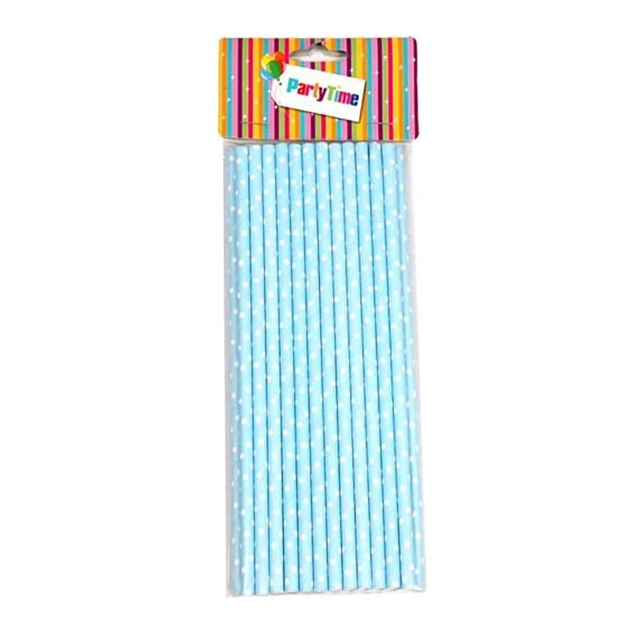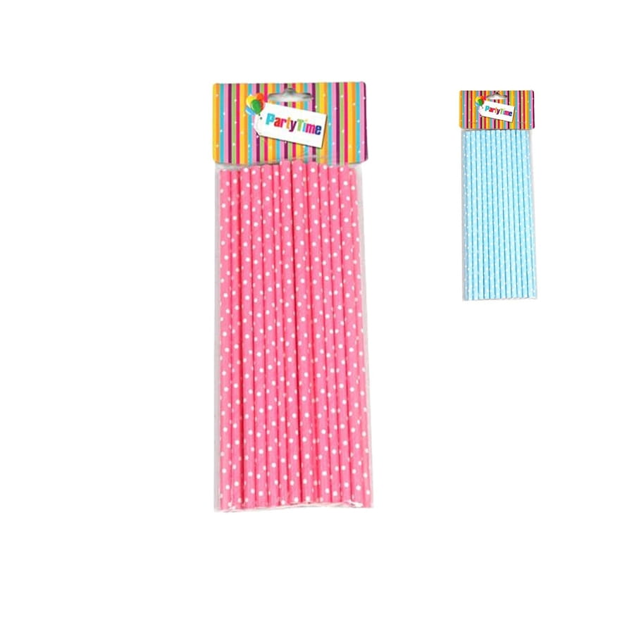 Ces pailles sont décorés de pois blancs, et sont disponibles en deux couleurs: bleu et rose.