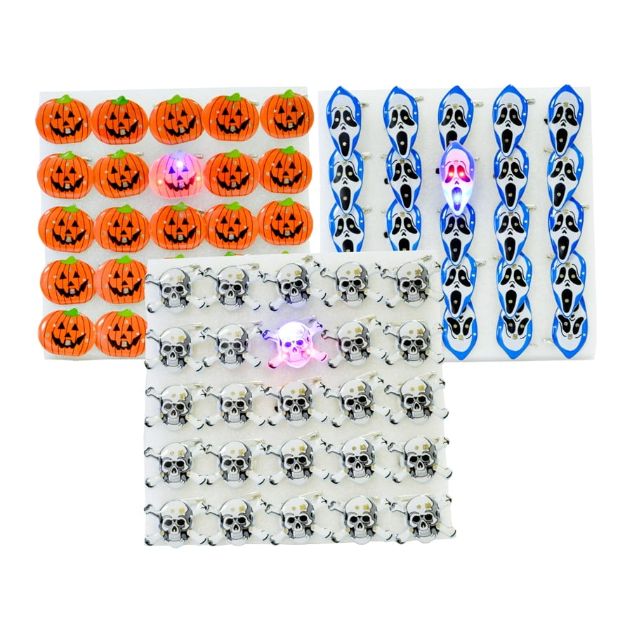 Carte contenant 25 pins lumineux basés sur le thème d'Halloween, pour homme, femme, garçon ou fille. Ces petits accessoires sont livrés avec les piles. Lors de votre commande, vous ne pourrez choisir ni le modèle ni la couleur des pins et recevrez celui de squelette, de fantôme ou de citrouille. Ils seront parfaits pour vous illuminer lors de votre récolte de bonbons ou lors d'une soirée.