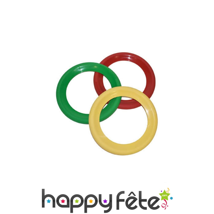 Ces 3 anneaux de clown, 20 cm sont faits en plastique et possèdent une circonférence de 20 cm chacun.