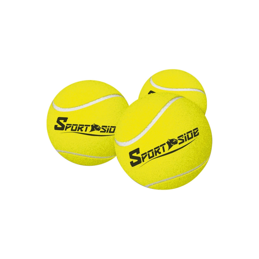 Sachet contenant 3 balles de tennis de couleur jaune avec bandes blanches. Un logo "Sport Side" est imprimé sur chacune des balles. Que vous soyez adultes, adolescents ou enfants, vous pourrez pleinement profiter de ces balles.