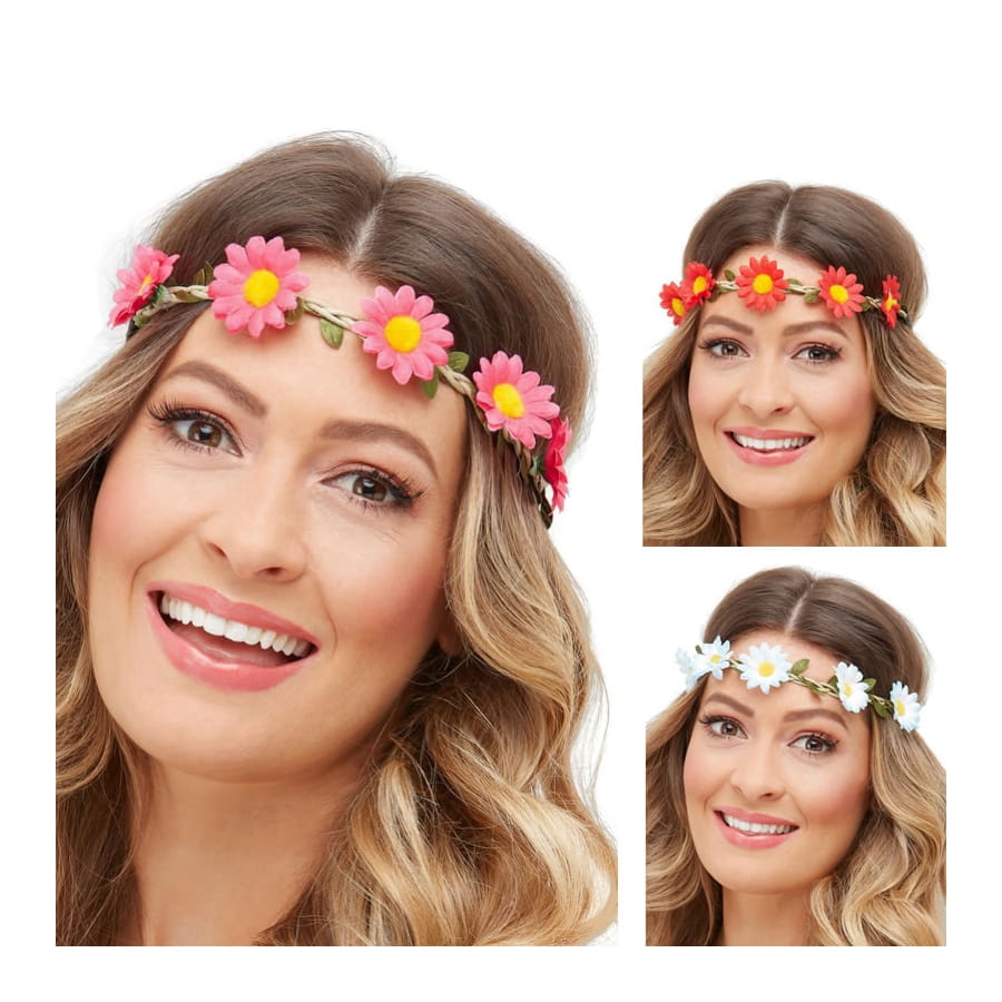 Pour agrémenter à merveille vos costumes divers, nous vos proposons ces 3 Bandeau de fleurs, rose rouge blanche.
