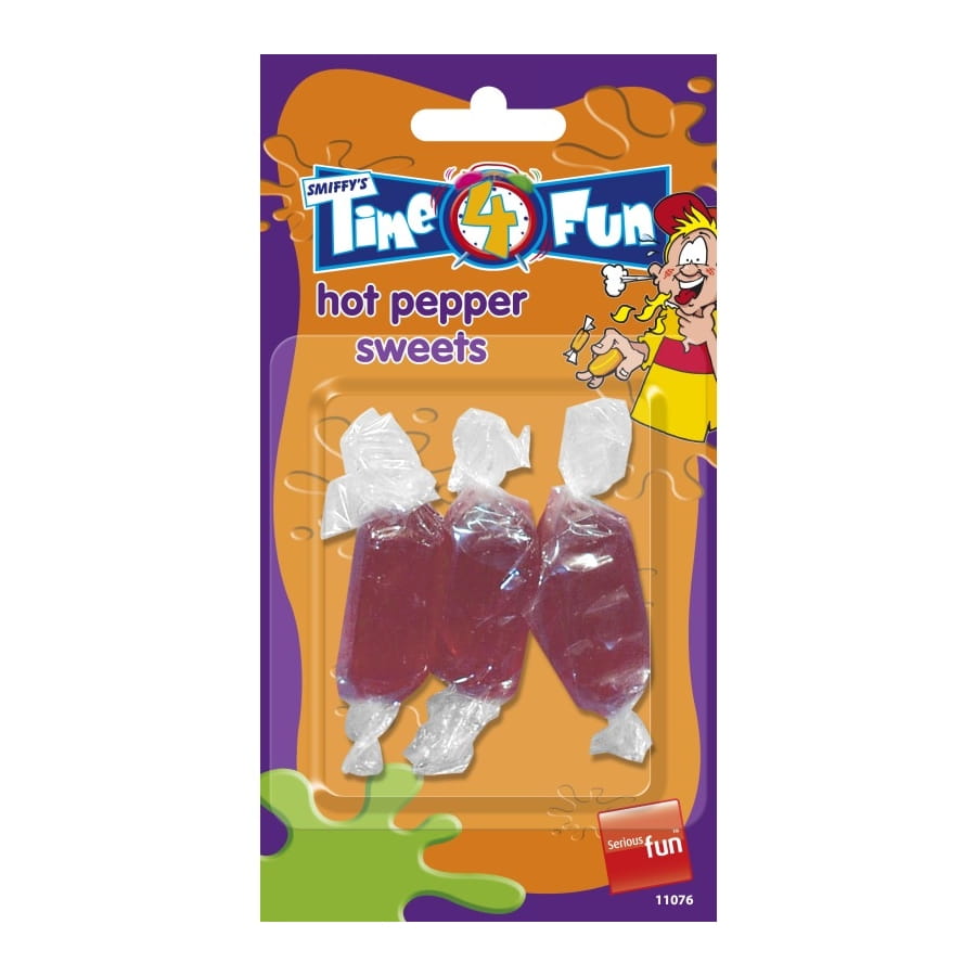 Lot de 3 bonbons de couleur rouge au goût de piment, pour homme, femme, adolescent ou adolescente. Cet accessoire est idéal pour jouer un mauvais tour à vos camarades!