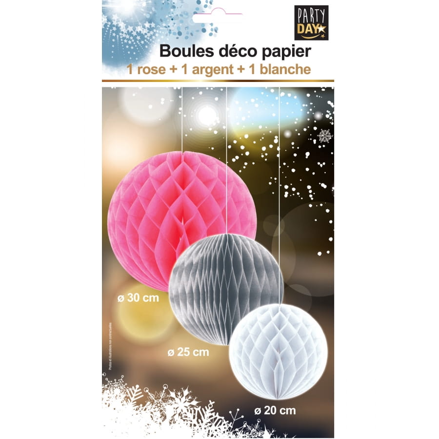 Les avis clients concernant 3 boules de papier à suspendre rose argent blanc