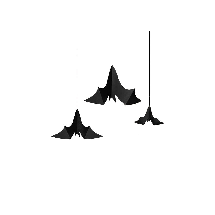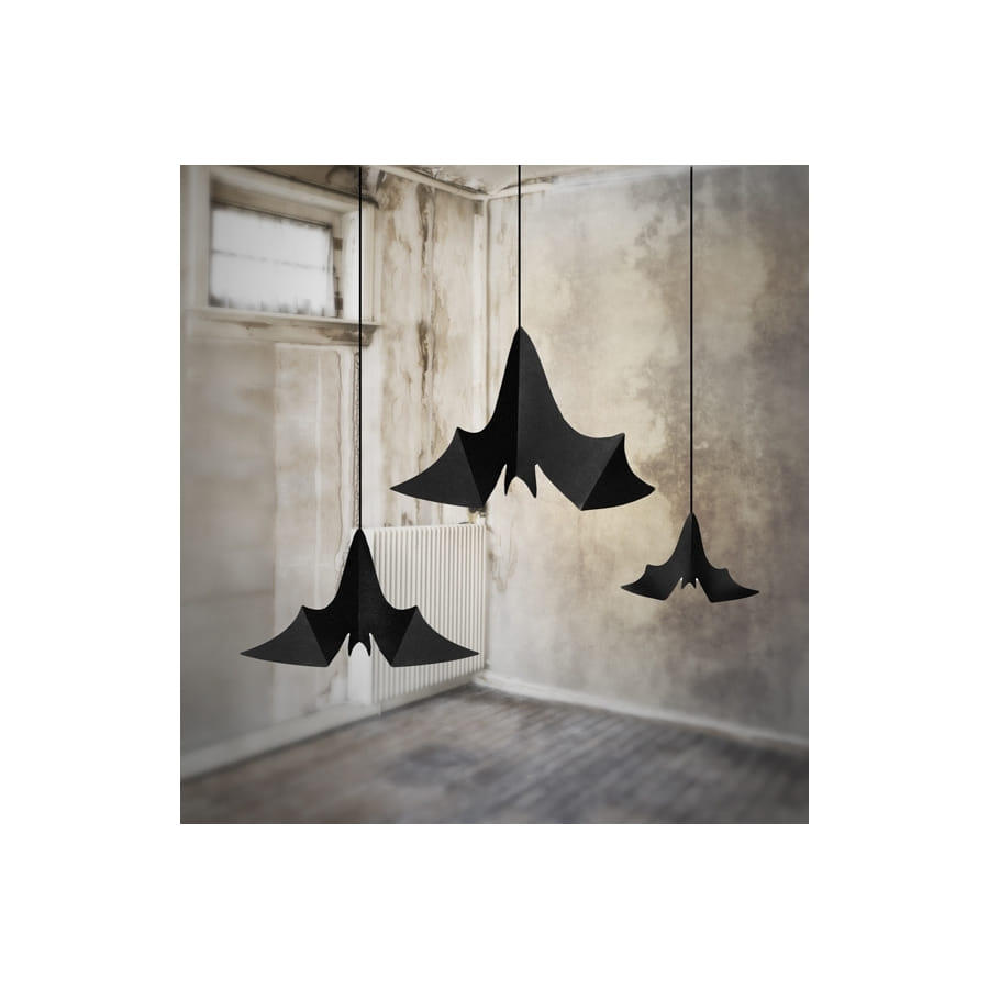 Apportez une touche terrifiante à votre décoration grâce à ce lot de 3 Chauves-souris noires à suspendre.