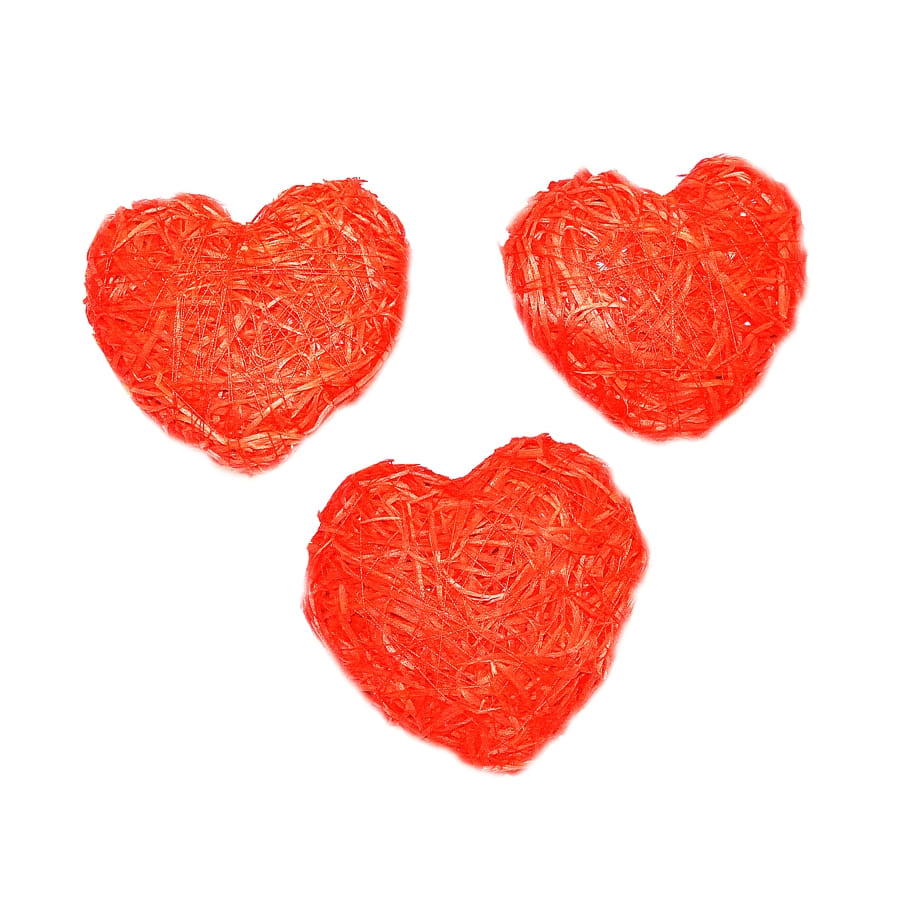 Voici 3 coeurs décoratifs, fabriqués en rotin, de couleur rouge et de dimensions 7x7 5x3 cm. Pour organiser une fête, quel que soit le thème : classique, moderne ou traditionnel, une bonne décoration est essentielle. S'il s'agit d'une cérémonie de mariage, des fiançailles, de la Saint Valentin ou de la fête des mères, nous vous suggérons ces trois mignons petits coeurs rouges en rotin. Ils vous serviront à décorer une table ou un buffet, ou bien pour embellir votre bouquet.
