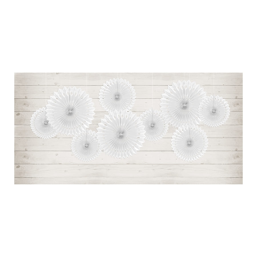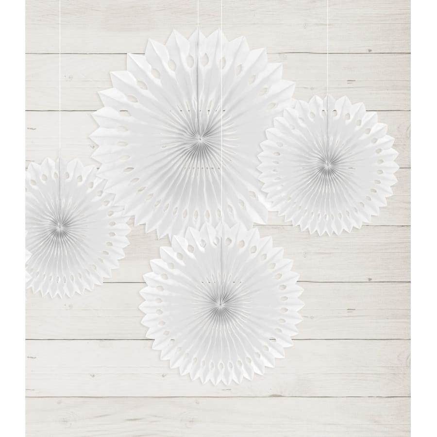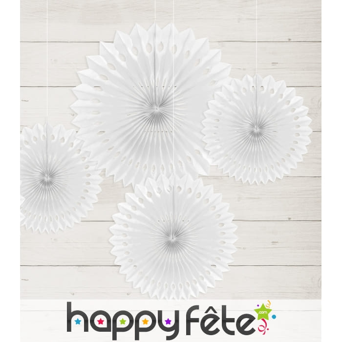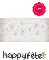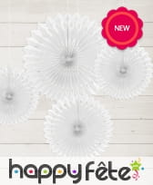 Optez pour une décoration d'intérieur chic et classe lors de votre prochaine fête prénatale, avec les 3 éventails ronds en papier blanc de 30, 25, 20 cm.
