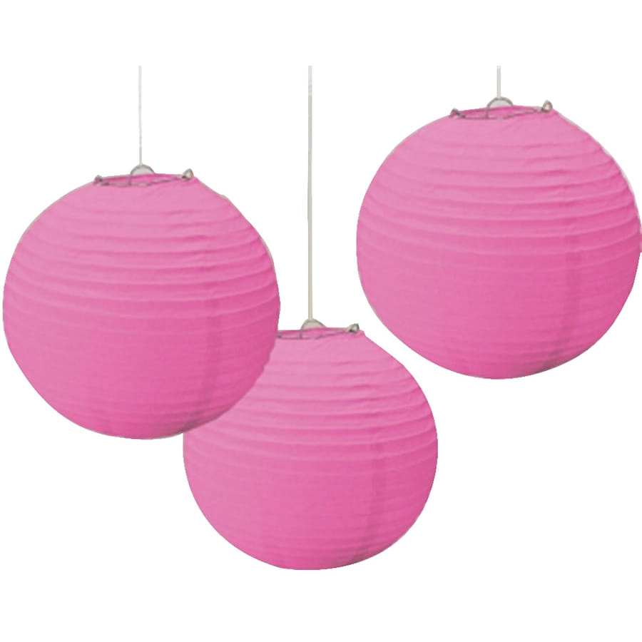 Pour que vous puissiez avoir la meilleure décoration lors des fêtes à thème ou des anniversaires, nous vous suggérons ce lot de 3 lanternes boules roses de 24cm.
