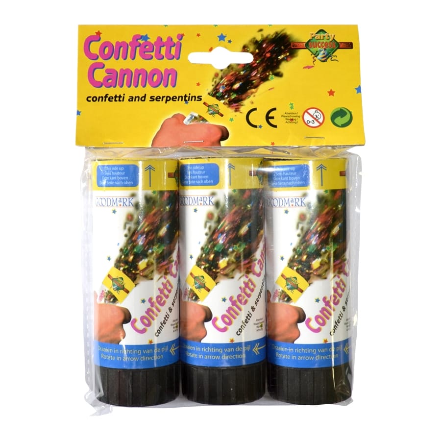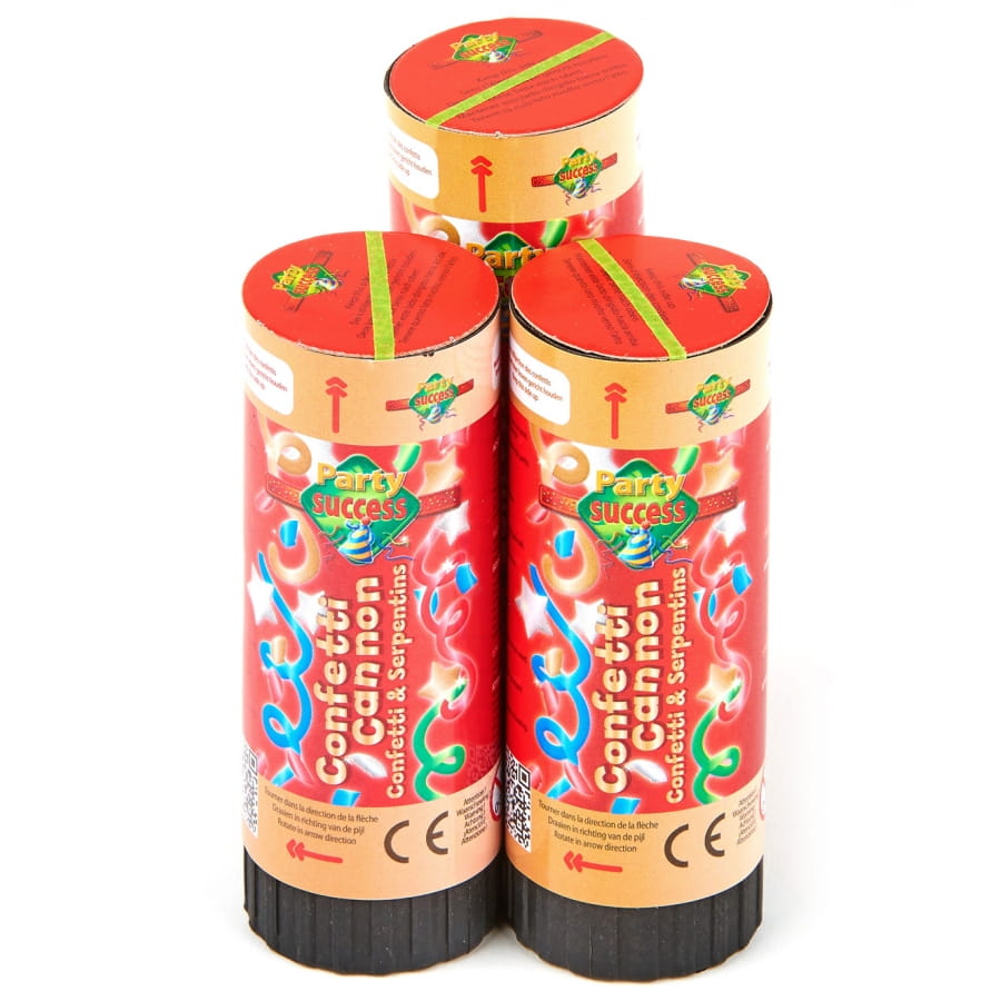 Faites éclater les canons ! Pour les différentes festivités qui s'annoncent tous les ans, il vaut mieux avoir en réserve des canons à serpentins. Ce lot de trois canons est idéal pour les mariages et le nouvel an. Chaque canon est à usage unique et mesure 11 x 3,8 cm. Pour les déclencher, il vous suffira de tourner les deux parties du canon et de viser en l'air. Et boum, de multiples couleurs s'envolent un peu partout !
