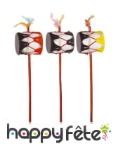 Il est question ici de petits tambours multicolores, ornés de petits motifs très colorés (papillon, souris,...)