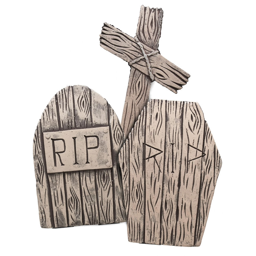 Transformez votre jardin ou l'intérieur de votre maison en véritable cimentière terrifiant à Halloween, grâce à ces 3 pierres tombales effet bois usé de 50 cm.