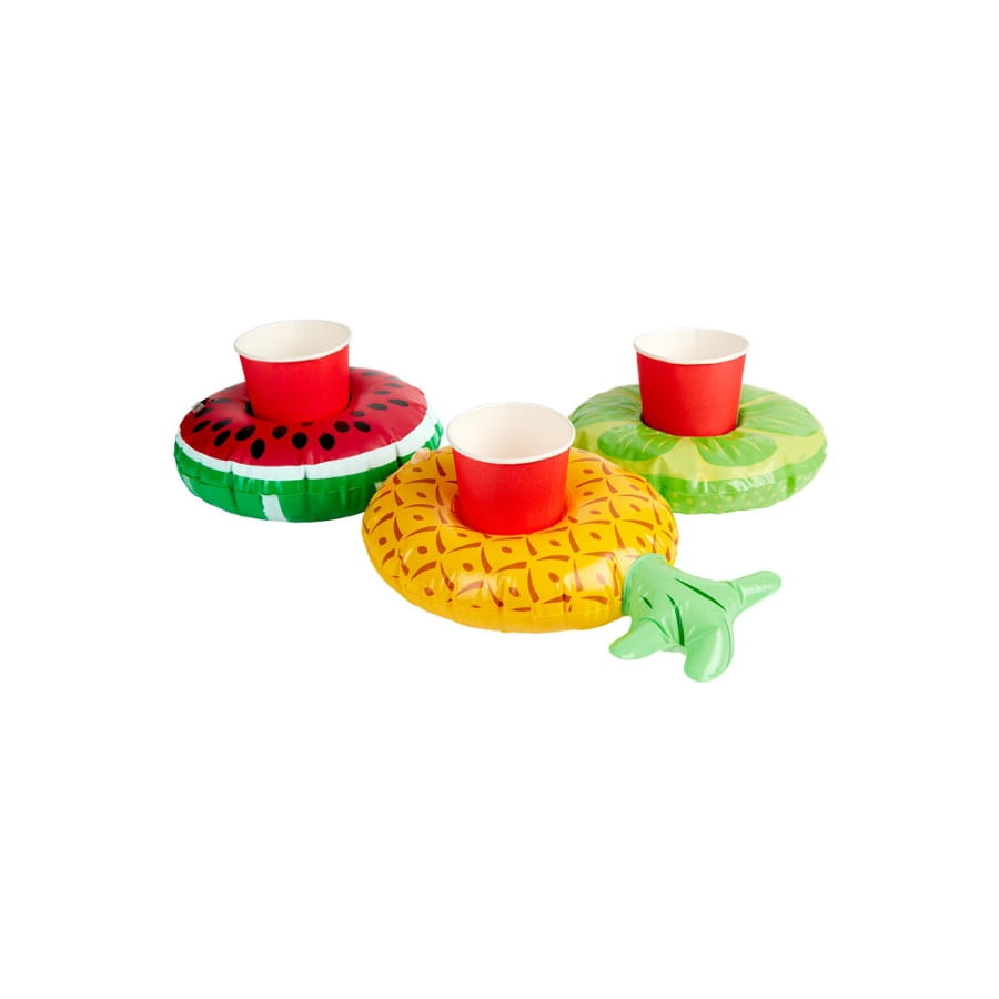 Complétez la déco d'une soirée exotique entre amis, grâce aux 3 porte-boissons fruits exotiques, 20 cm.