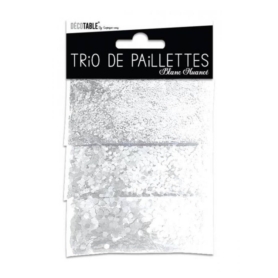 A l'occasion d'une soirée à thème de Noël (par exemple), agrémentez votre déco avec nos 3 sachets de paillettes blanches gabarit différent.