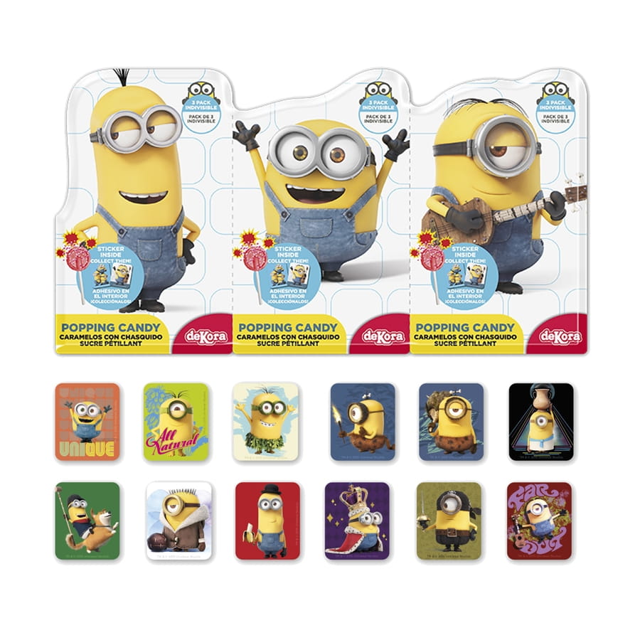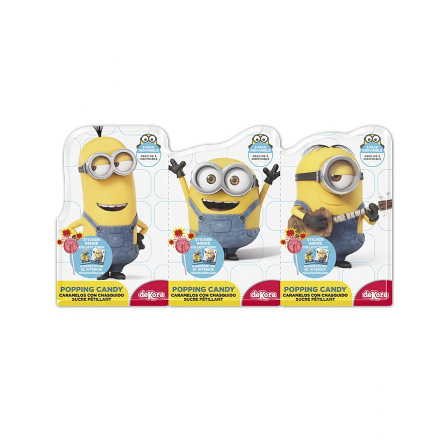Bob, Stuart et Kevin vous font découvrir des friandises qui font l'effet d'un feu d'artifice en bouche. Procurez-vous le lot de 3 sucres Minions pétillants pour vous faire plaisir. Sous licence Disney, cet article renferme des sucreries sans gluten et des stickers à collectionner. Les paquets sont de couleur jaune avec les minions à l'affiche, et pèsent 54 g.