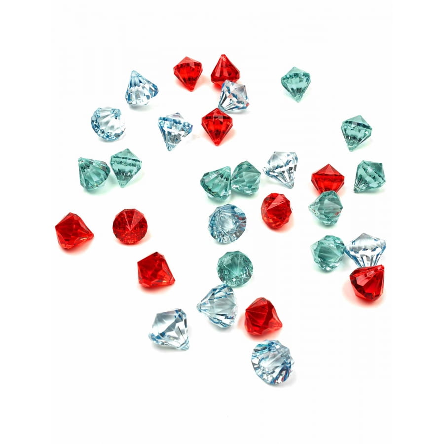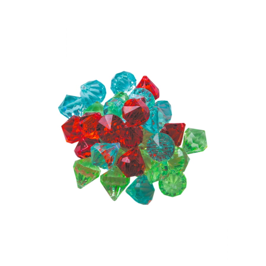 Les 30 fausses pierres précieuses de 3 cm sont en plastique.