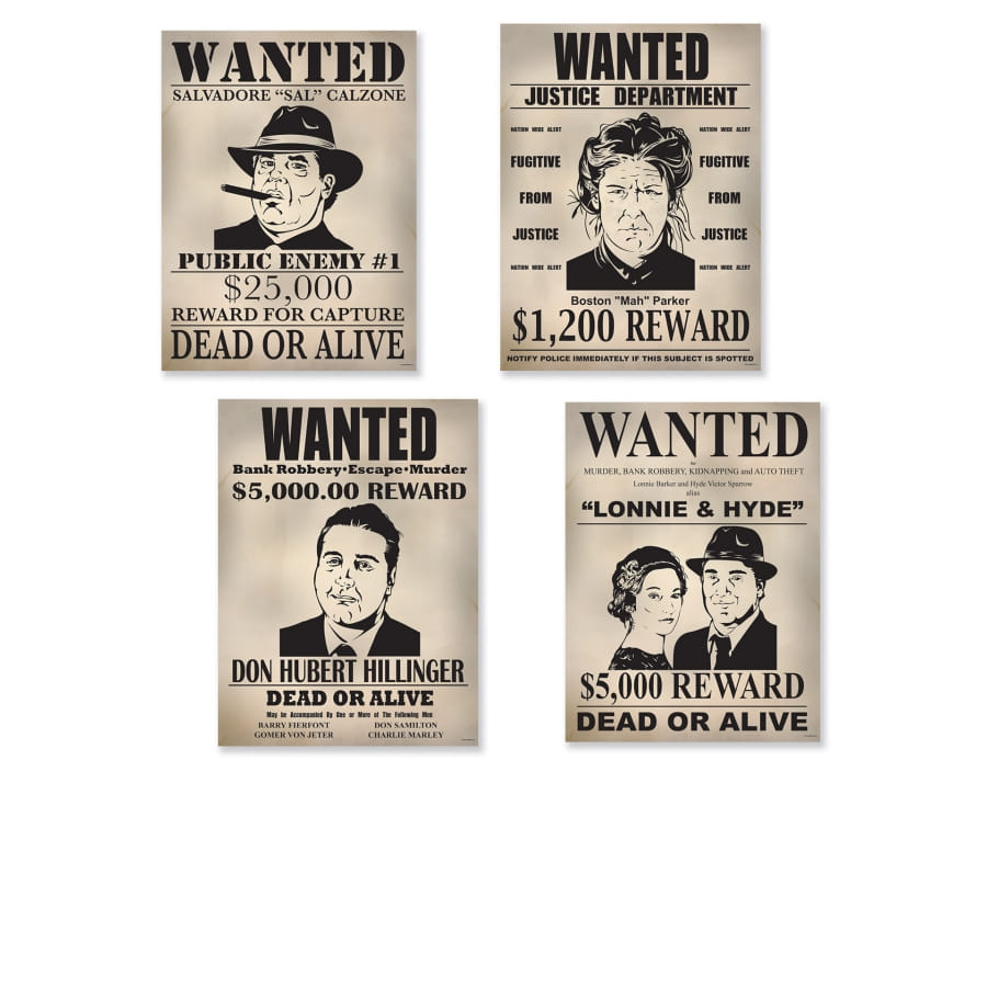 Cet ensemble de 4 affiches Wanted en carton de 39 cm sera excellent pour compléter votre décoration.