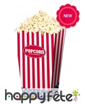 La majeure partie de chaque boîte est rayée de rouge et de blanc, avec le mot "POPCORN" en lettres blanches sur fond rouge.