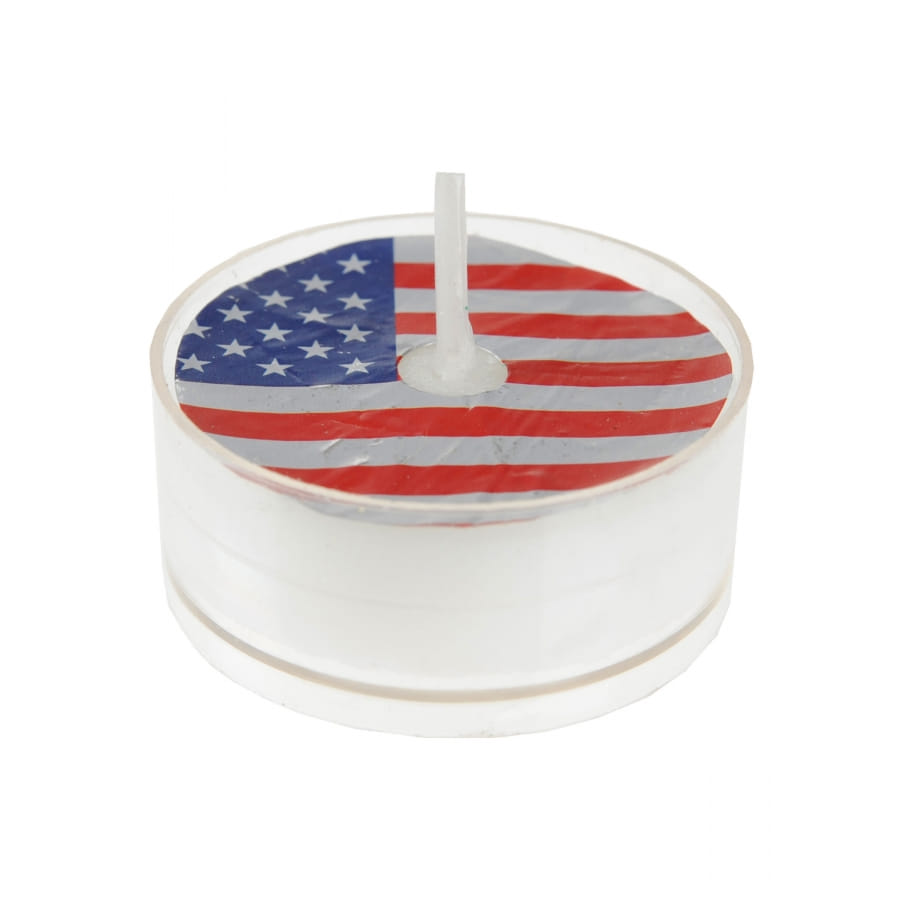 Ces bougies chauffe-plat de 3,5 cm de diamètre sont aux couleurs des États unis d'Amérique.