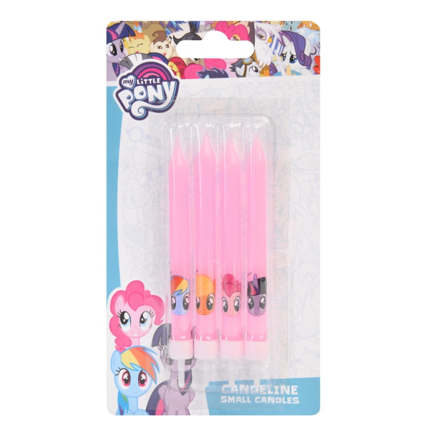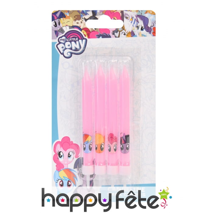 Votre fille sera plus que contente, en voyant son gâteau d'anniversaire décoré de ces 4 bougies My Little Pont roses pour gâteau, 9 cm.