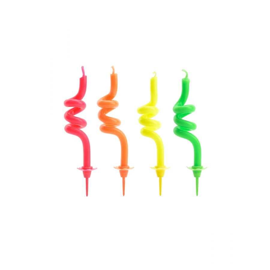 Les bougies torsadées colorées de 8 cm sont vendues en lot de 4.