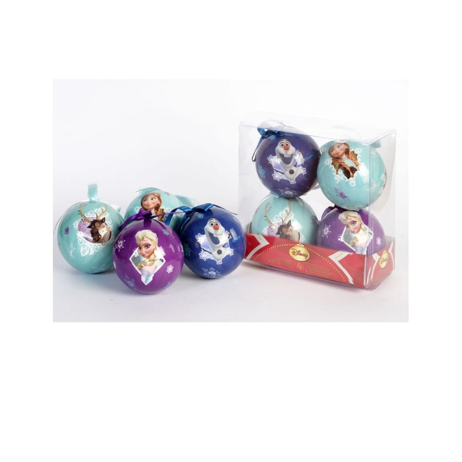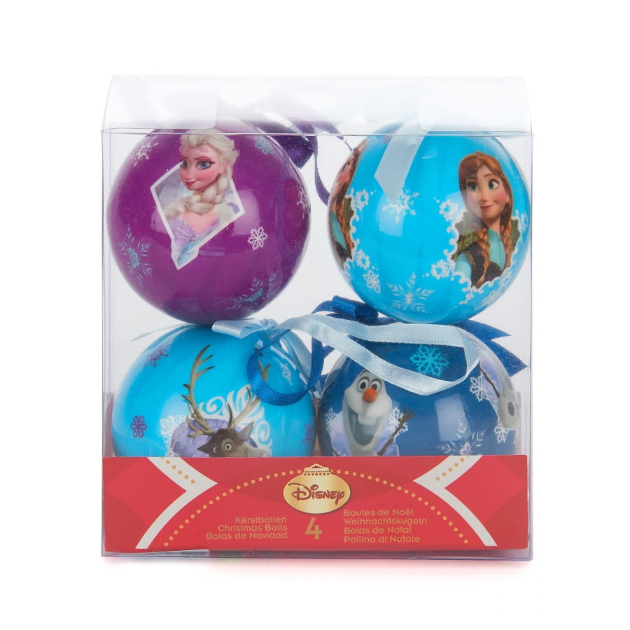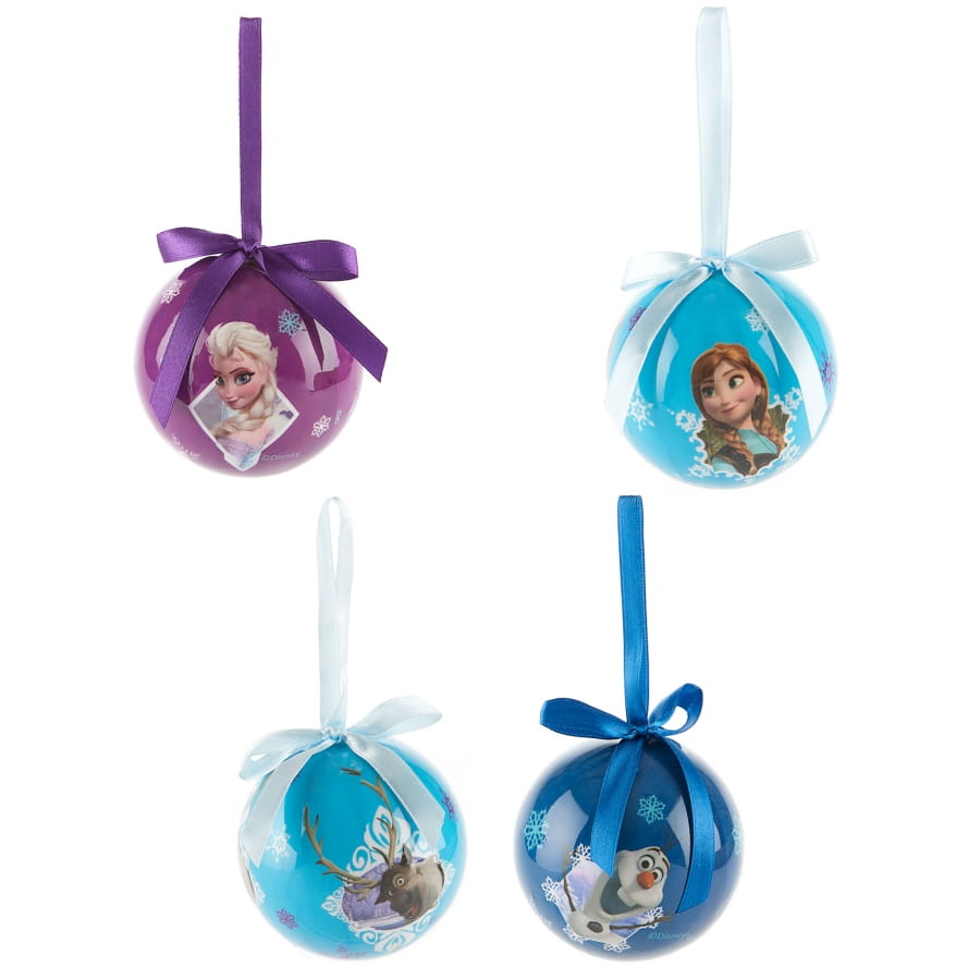 Optez pour une décoration de Noël sur le thème préféré de vos enfants, avec nos 4 boules de Noël La reine des neiges 7,5 cm.