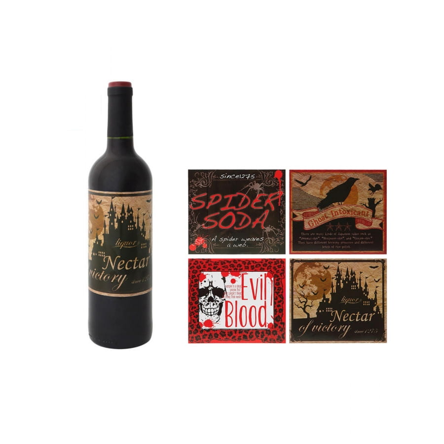 Ces 4 étiquettes Halloween pour bouteille apporteront une touche d'originalité à votre décoration de table.