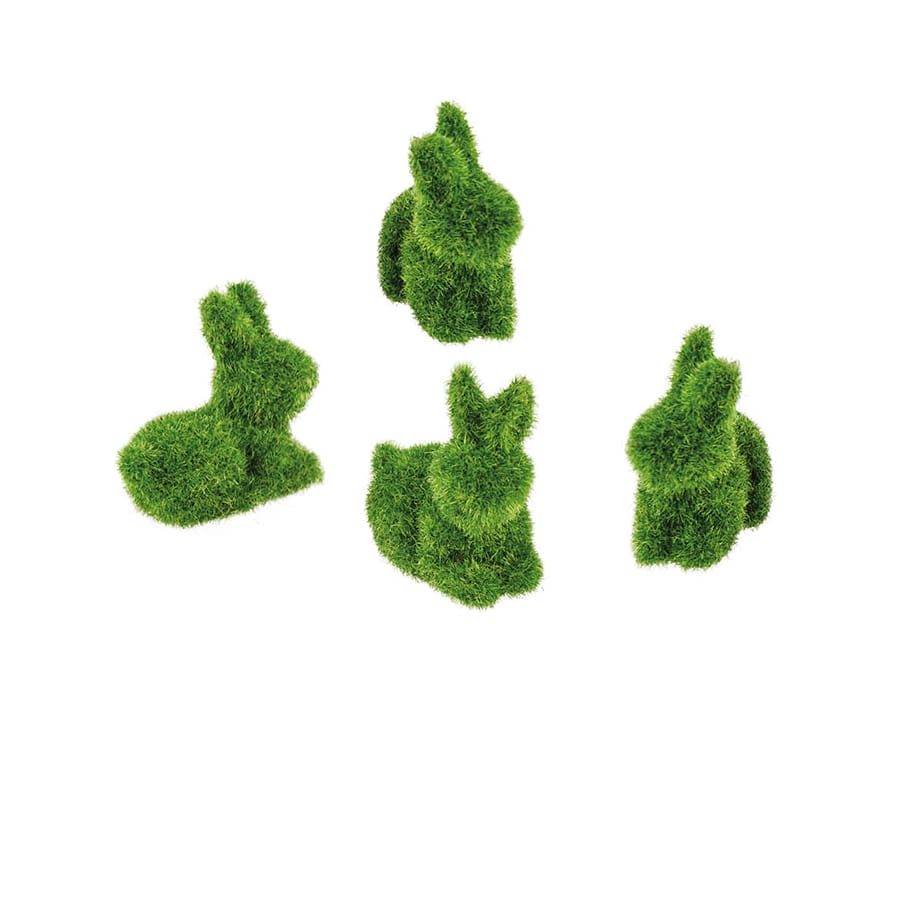 A l'occasion de la fête de Pâques optez pour une déco sui sort de l'ordinaire avec ce lot de 4 lapins verts en aspect mousse, 3,5 x 4 cm.