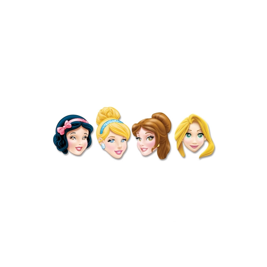 Quatre fillettes pourront expérimenter la vie d'une héritière à travers ce lot de 4 masques princesses Disney en carton sous licence Disney.