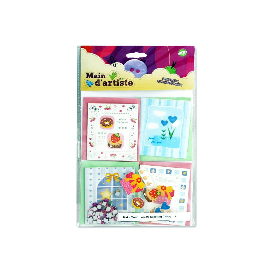 Un sachet de 4 mini cartes avec enveloppes, vous pouvez aider votre fille avec ces mini cartes pour envoyer a ces amies. Ces 4 mini cartes avec des enveloppes à décorer, elles font 9*7.5 centimètres.