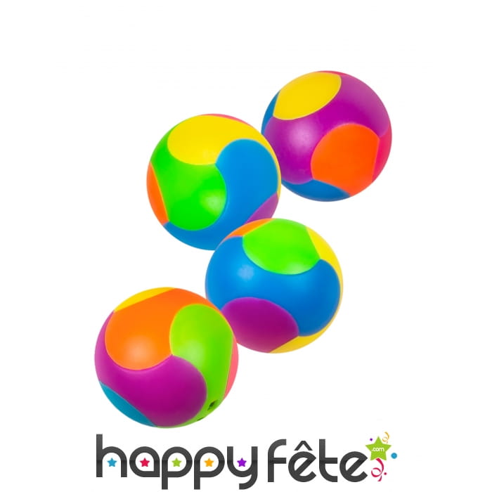 Ces 4 petites balles multicolores, seront parfaites pour attirer l'attention de tous les petits curieux lors d'une kermesse.