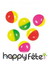 Chaque balle fait un diamètre de 3 cm, et possède plusieurs couleurs vives : orange, vert, violet, bleu, rose,...