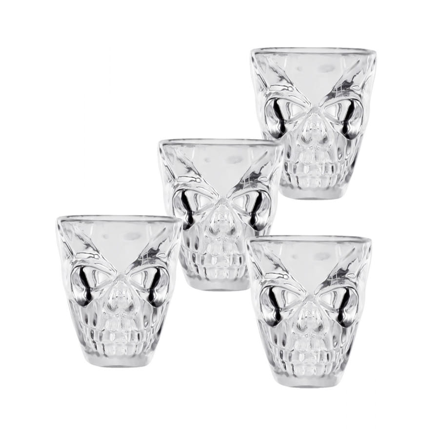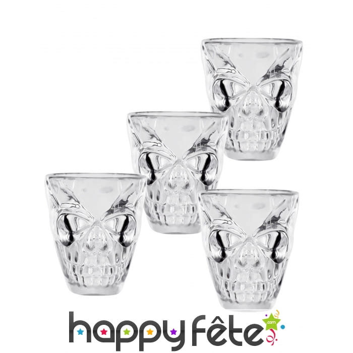 Les 4 shots transparents en forme de crâne possèdent une contenance de 50 ml.