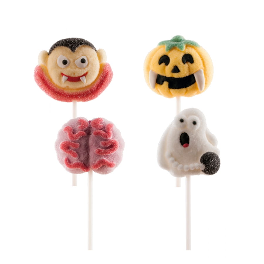 Ne manquez pas l'occasion d'offrir des sucettes aux ingrédients aussi divers que variés à vos enfants au soir de Halloween. Ce lot est une composition de 4 sucettes de chamallow Halloween représenté individuellement d'un vampire, une citrouille, un cerveau et un fantôme. Faites le plein de sensation en faisant déguster à vos enfants des sucettes succulentes hors de danger.