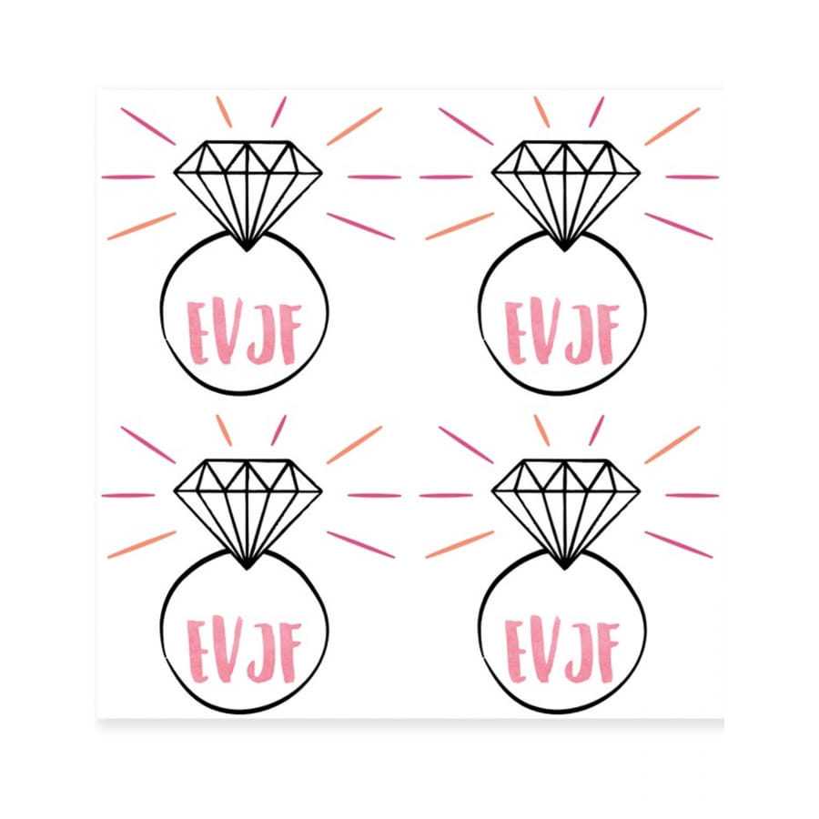 Pour une nuit de folie avant le grand jour, Le mariage, vous allez vous amuser avec cette planche de 4 tatouages bague Enterrements de vie de jeune fille pour adulte.