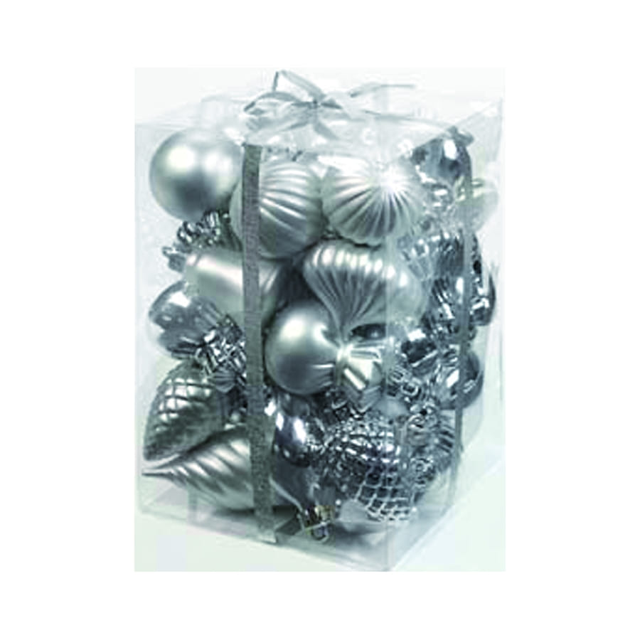 Décorations de Noël assorties en plastique argentées, vendues par lot de 40. Ces décorations mesurent 4 centimètres. Avec ce sachet de décoration, vous obtiendrez un magnifique sapin de Noël!