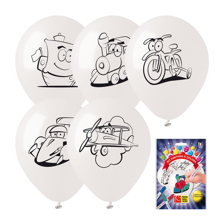 Les enfants seront fiers d'accrocher leurs chefs d'oeuvre à l'occasion d'un goûter d'anniversaire. Procurez-vous ce kit de 5 ballons à colorier sur le thème des jouets. Il contient 5 ballons de couleur blanche avec des images de jouets personnifiés dessinés dessus qui n'attendent qu'à être coloriées. Disposez également de 3 feutres de différentes couleurs.