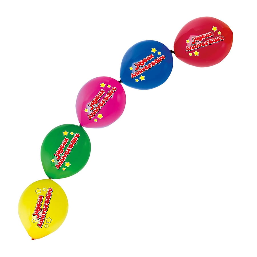 Concevez une guirlande avec ces 5 ballons à liens joyeux anniversaire, 30cm, et ajoutez de la joie et de la gaieté à votre salle d'anniversaire.