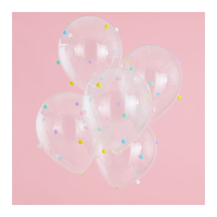 Les 5 ballons confettis transparents de 30 cm sont en latex.