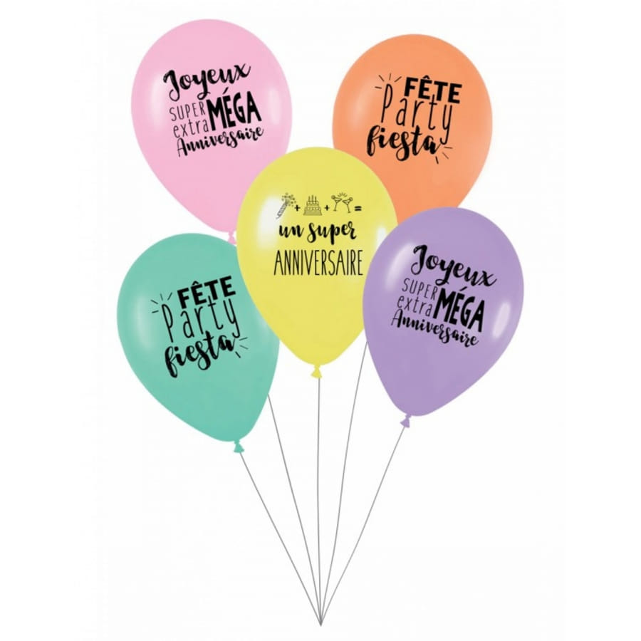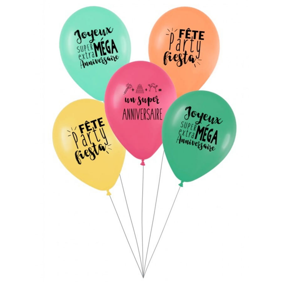 Pour une décoration tendance pendant l'anniversaire de votre enfant, ayez ce lot de 5 ballons d'anniversaire Party Fiesta.