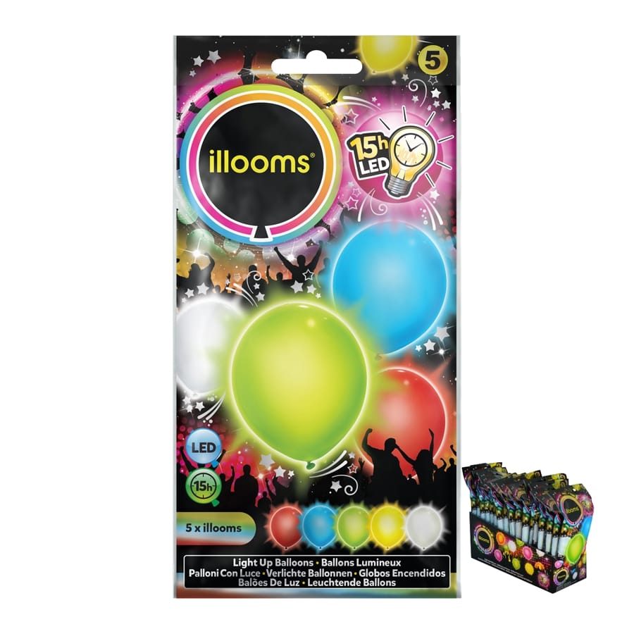 Surprenez vos convives avec ces 5 ballons lumineux multicolores : bleu, rouge, jaune, vert et blanc. Ils se vendent par sachet de 5 et chaque ballon mesure 23 cm de diamètre ; des petites leds sont livrées avec. Avant de gonfler les ballons, placez les leds à l'intérieur. Une fois gonflés, vous pouvez monter votre décoration, ils vous illumineront toute la soirée.