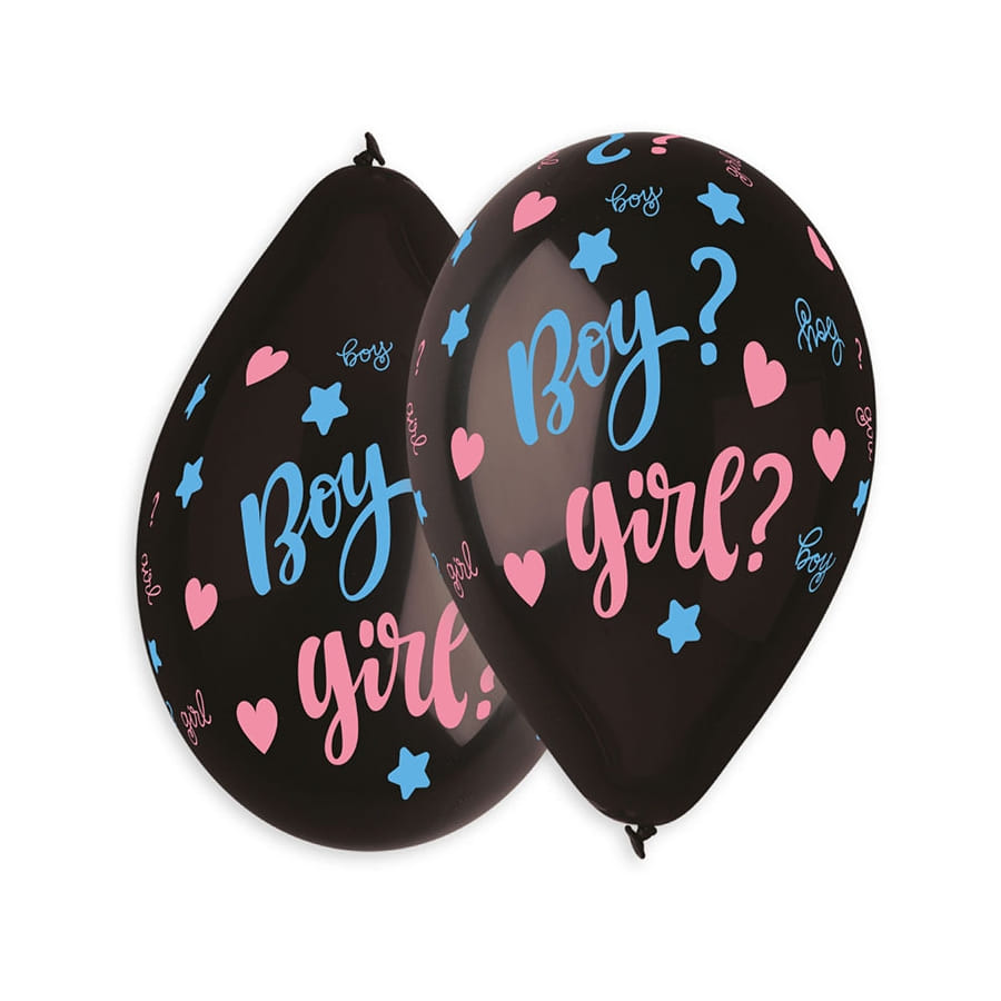 Nos 5 ballons noirs boy ou girl et confettis, 30cm sont parfaits pour accueillir en grande pompe un nouveau-né dont le sexe reste la surprise.